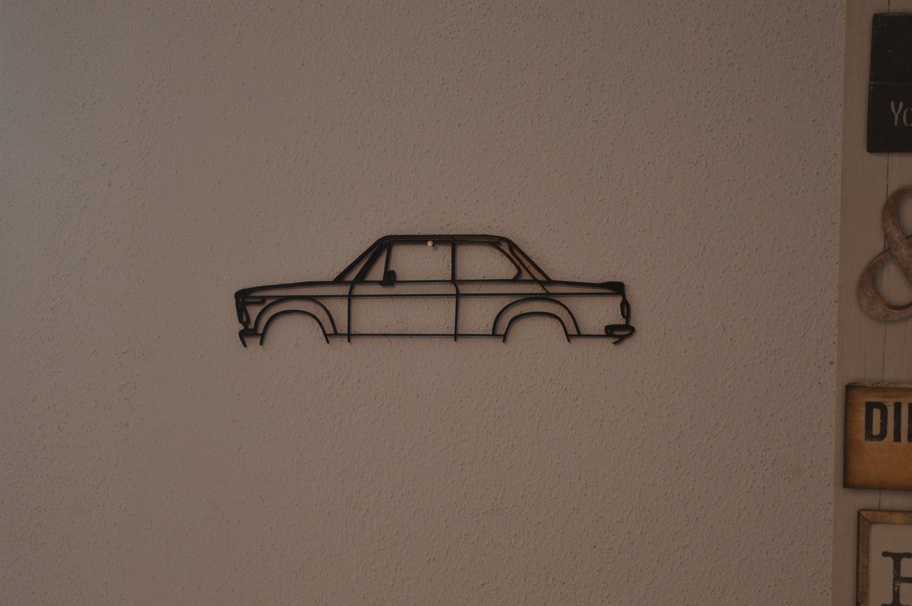 Unsere Wanddeko mit der Silhouette eines BMW 2002 ist perfekt für jeden BMW-Liebhaber. Die stilvolle Silhouette des BMW 2002 macht sie zu einem eleganten Statement-Stück für Ihre Wand. Die hochwertige Wanddeko verleiht jeder Einrichtung einen Hauch von Rennsport-Flair.