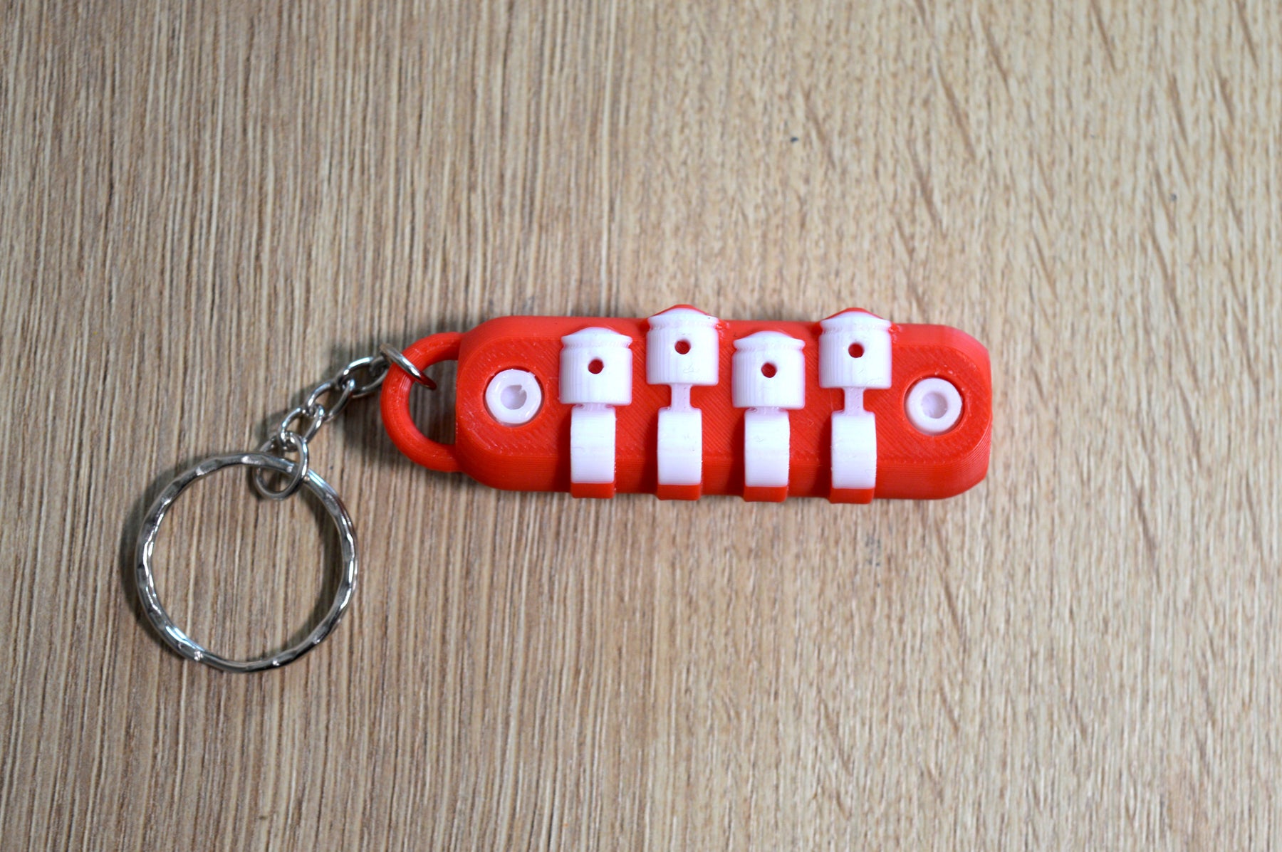 Einzigartiger 3D-gedruckter Schlüsselanhänger für echte Motorfans: Vorderseite mit GTI-Logo, Rückseite mit wählbarer Motorbauform (R, V oder Boxer). Robust, nachhaltig und ein echter Hingucker für deinen Schlüsselbund.